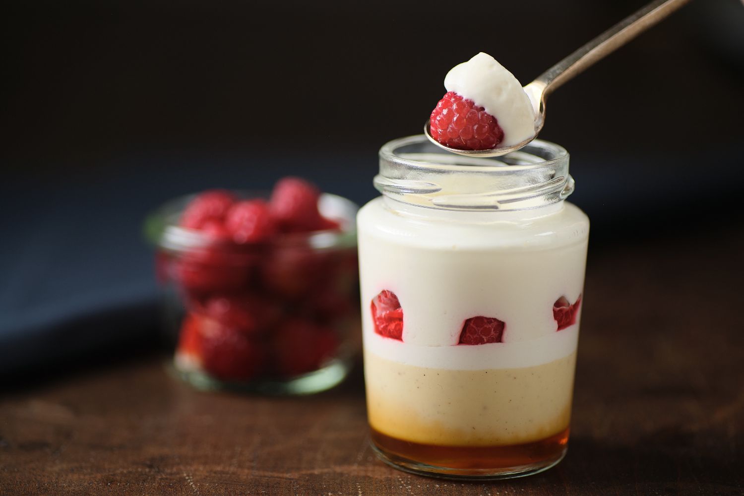 そこで出合ったのが、ロワール地方・アンジェで味わった〝皿盛り”のクレメダンジュでした。「皿にめいいっぱいの木苺のソースが敷かれ、真ん中に背の高いふわふわのレアチーズケーキが乗って出てきたんです。これがクレメダンジュ?って」。日本ではガーゼに包まれた姿が定番だったからこそ、たっぷりの木苺のソースを使った自由な表現に、見た目も含めて感銘を受けました。「15年も前の話ですし、アンジェだけのスタイルなのかもしれませんけど…。それから、よくその店に通うようになり、自分の味を作ってみたいと思うようになりました」と横田さんは話します。その原体験は、後に「Dewon」のケーキプリン「クレメダンジュプリン」へと繋がっていきます。「当時はまだ構想なんて無かったんですけど、フランスでの経験がヒントになったのは間違いありません」。